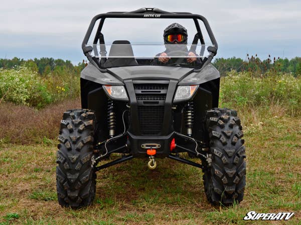 Help protect you and your passenger from sticks and other flying debris while blazing the trail with a SuperATV windshield - the best off-road windshield on the market. With many protection and tint options to choose from, each windshield is a super tough polycarbonate construction with a bottom seal that's contoured to your ride's design. Our non-tinted, 1/4" hard coated abrasive resistant material is much stronger than your average UTV windshield. We've also beefed up the scratch resistance by hard coating this style windshield on both sides for years of use. If you don't need the extra protection, we also offer a non-scratch resistant option with a dark tint.