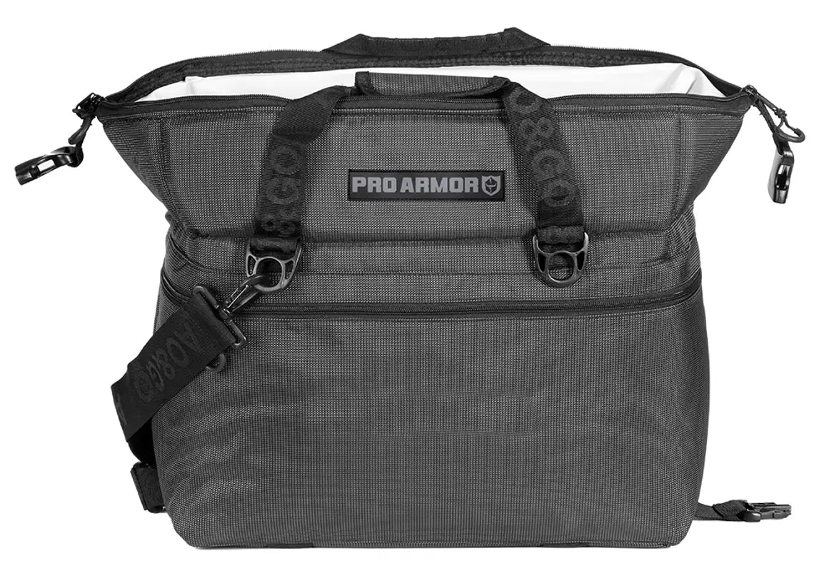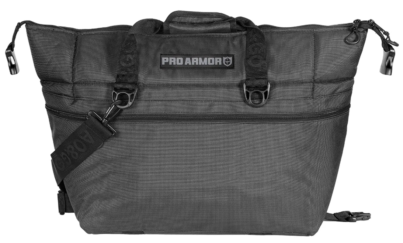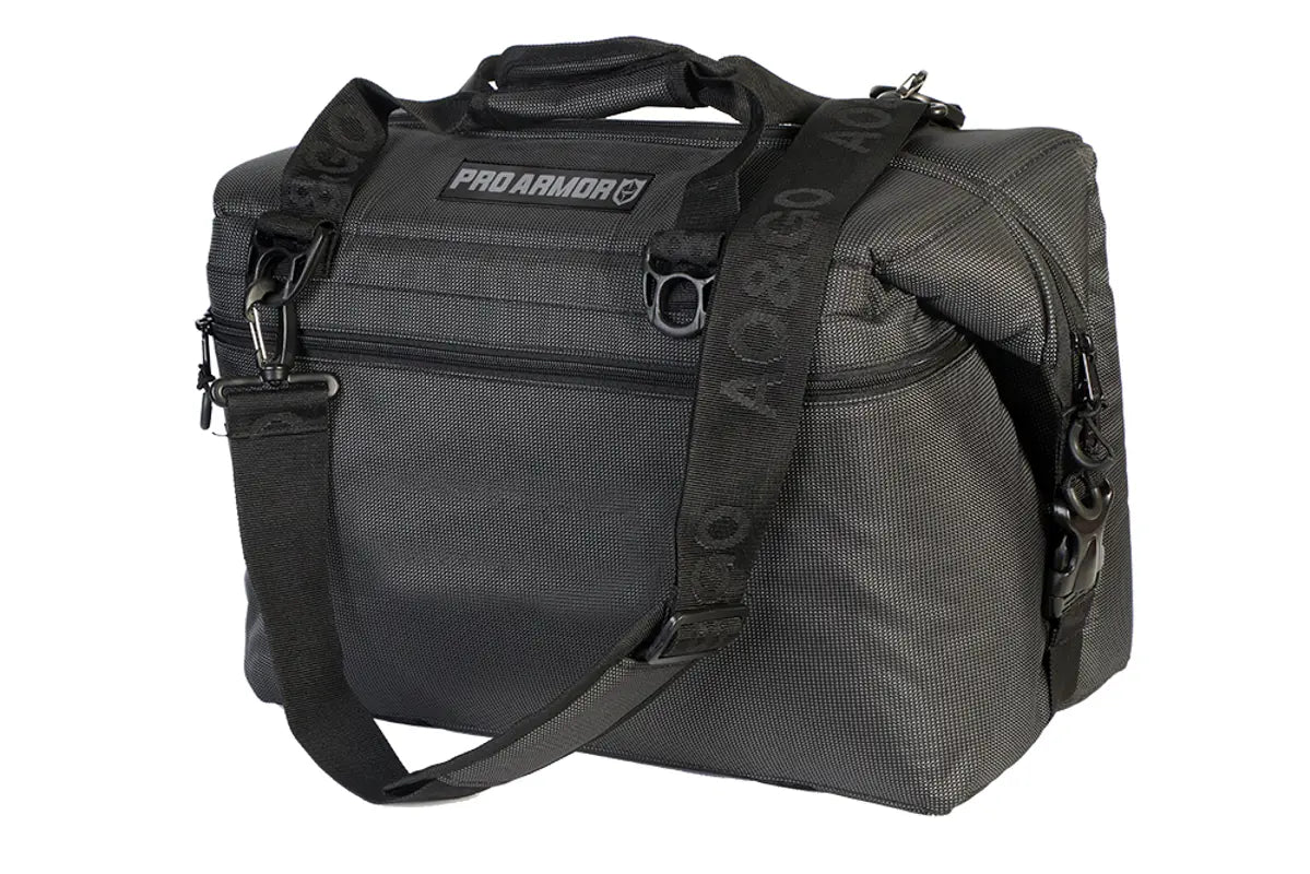 Pro Armor partnered with AO’s ballistic series is the newest addition for any rider holding up to 36 Cans and 14 lbs. of ice! The 1680 denier ballistic material is a tough, synthetic 2x2 basket weave fabric. This heavy-duty fabric is abrasion resistant and has a durable construction, making it a top-performing choice for rugged applications. Ballistic material is most widely used in the construction of backpacks, luggage, belts, straps, motorcycle jackets, watch bands, and knife sheaths. This lightweight Ballistic fabric will hold up well against extreme temperatures and outdoor elements. Our coolers are insulated with a ¾” thick closed cell foam to keep drinks and food ice cold weekend long. Lined with a welded TPU eco-friendly liner that is leak proof. Features four tie-down hooks to strap it down in any off-road vehicle.