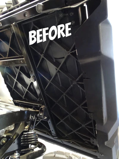 Here at MudBusters, we get it; not everyone wants fender flares. Whether you don't mind getting muddy because your cab is already enclosed or you love the thrill, two things are for certain with the Can-Am Defender. You will have debris build-up in front of your rear tires behind the driver and passenger side cab and underneath your dump bed to weigh your vehicle down.