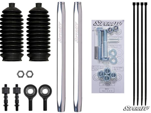 This kit includes everything you need to get it installed and get riding. It fits right on your stock rack and pinion and steering knuckle without issue. And you can adjust your toe on the fly just by loosening your jam nuts and turning the rods. It’s fast and easy.
