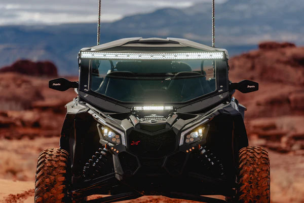 Every windshield we produce is made with Laminated Clear Safety Glass just like automobile glass. Each windshield has two independently working Vents which can be open or closed depending on the weather. The Aluminum Frames are Powder Coated in Textured Black which is more scratch resistant than standard smooth Powder Coats. Each windshield was templated by our team of fabricators using the best technology and equipment to get the best fit possible.