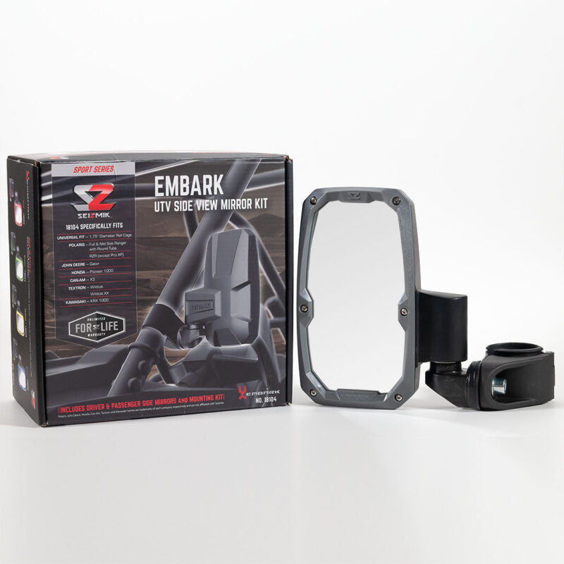 The Embark Side View Mirrors include replaceable, convex mirror glass and are backed by Seizmik’s Unlimited Lifetime Warranty. We don’t care if your cow eats the mirror, or you shoot it, we’ll send you the replacement parts needed to repair the mirror for FREE. SERIOUSLY. FREE. And, you can customize your Embark Side View Mirrors to match your ride with our color Bezel and Cap kits (sold separately).