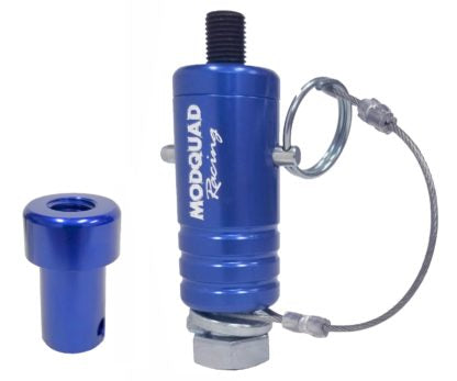 Billet Aluminum Quick Disconnect Whip Mount. Includes two caps to mount whips with 3/8-24 and 1/2-13 threads. Simple Pull of a pin to swap out flags. Made in the USA