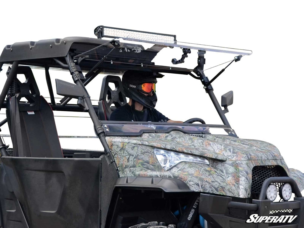 Hitting the trail in your Odes Dominator doesn’t have to mean compromising your comfort if the weather’s bad. Get SuperATV’s Scratch Resistant Flip Windshield and switch to the setting you need to match the weather. Hot out? Keep it fully open. Rainy? Keep it closed. Need just a little air? Vent it! Whatever nature throws at you and your Dominator, our windshield is ready for it.