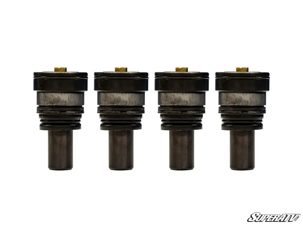 SuperATV spared no expense while engineering our ball joints. Our shear tests prove that our unique blend of a 4340 VAR steel stud, hardened to just the right Rockwell, and then coated with black oxide gives you a more desirable combination than your standard steel material. With a PSI breaking point of nearly double OEM and other aftermarket ball joints, the ball joints will last a long time.