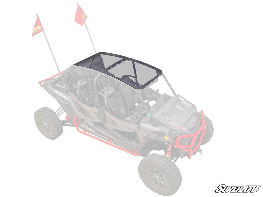 Get SuperATV’s Polycarbonate Roof for your Polaris RZR XP Turbo S and keep the sun and rain off your face. The dark tint reduces UV exposure and glare while maintaining your visibility and that open cab feel. We use 1/4” polycarbonate along with heavy-duty brackets and clamps to make sure it fits snug, secure, and rattle-free no matter how bumpy the ride gets. Polycarbonate is 250 times stronger than glass meaning this roof can take a beating without breaking. It’s protection, comfort, and visibility all in one.