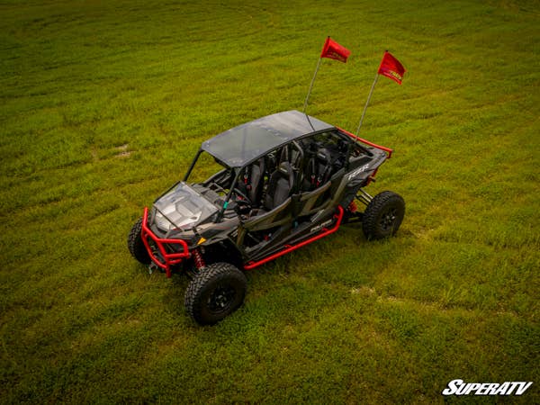 Go with SuperATV’s see-through roof to bring the outdoors closer. When you go for a ride, you don’t want to feel like you’re riding in a cave. Our roof gives you full visibility and lets in plenty of light while still blocking harmful UV rays, infrared heat, and precipitation. It also makes riding safer—the ability to see to the top or bottom of hills means you're never surprised by what's in front of you. That means more comfort, better views, and safer rides.