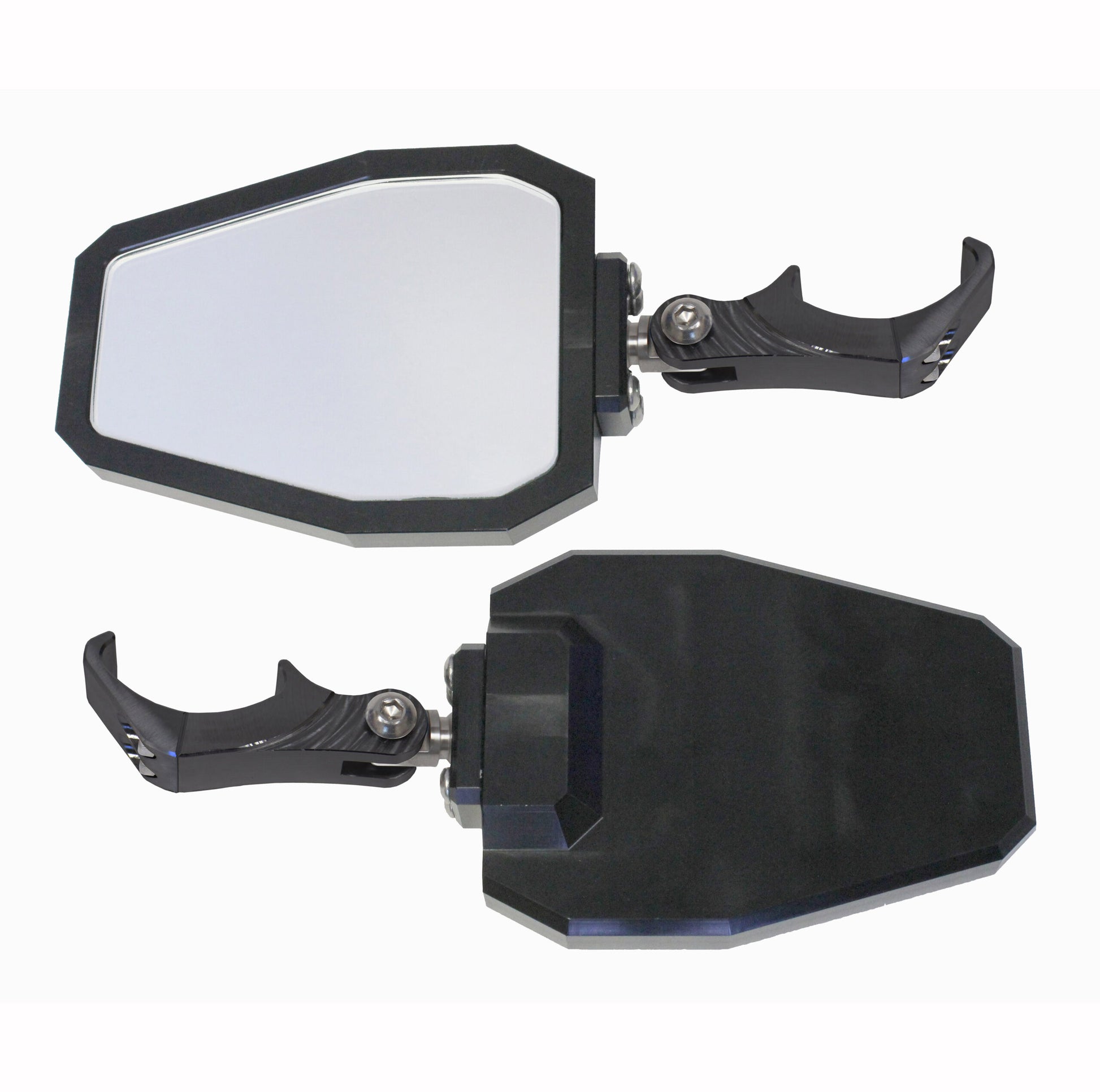 Black Anodized Billet Aluminum Side Mirrors. Fits Stock Cage on Polaris General and Pro Fit Cages. Made in USA.