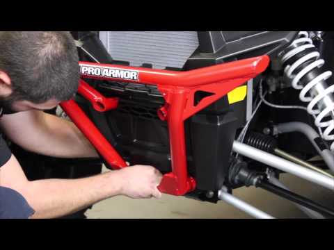 Pro Armor Race Styled Rear Bumper. Made from Aluminum this bumper combines strength with lightweight. Fully covering the rear of your RZR this bumper adds protection where needed but keeps the weight to a minimum. Our rear bumper takes just minutes to install by mounting to the chassis using the included hardware.