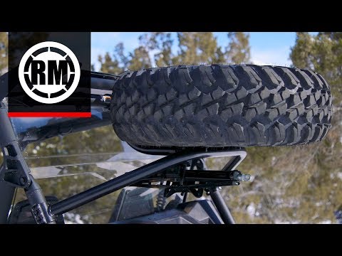 - Rugged spare tire carrier with a unique design that gives your UTV an aggressive, competitive look.